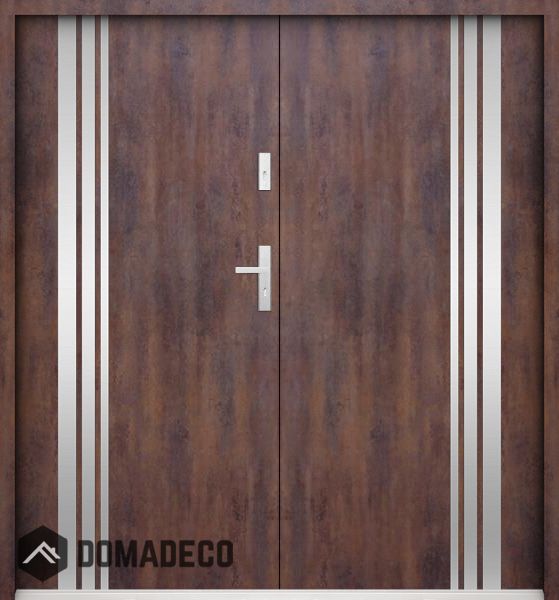 La porte est en acier inoxydable. À l'intérieur, il est rempli de mousse polyuréthane PUR et de bois. L'épaisseur du vantail de porte est de 55 mm. Double système d'étanchéité - un joint est dans le seuil du cadre et l'autre est situé dans la partie de support du vantail de porte. Ils réduisent les vibrations et protègent votre maison contre la perte de chaleur. Ils ne changent pas de volume sous l'influence des conditions atmosphériques. Le cadre de la porte est doté de renforts anti-effraction dans les pièces de charnière et les points de verrouillage.