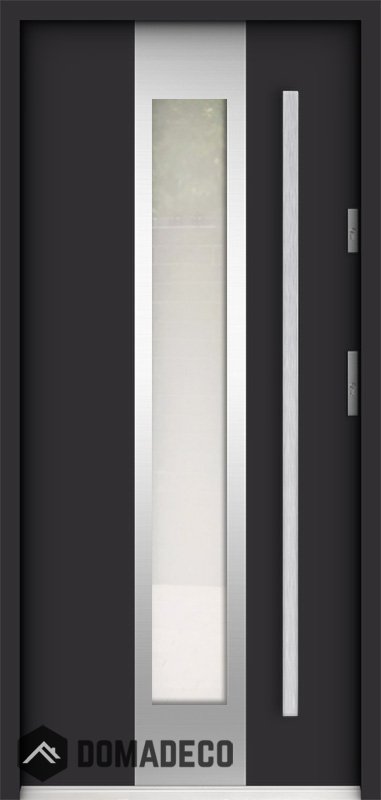 La porte est en acier inoxydable. À l'intérieur, il est rempli de mousse polyuréthane PUR et de bois. L'épaisseur du vantail de porte est de 55 mm. Double système d'étanchéité - un joint est dans le seuil du cadre et l'autre est situé dans la partie de support du vantail de porte. Ils réduisent les vibrations et protègent votre maison contre la perte de chaleur. Ils ne changent pas de volume sous l'influence des conditions atmosphériques. Le cadre de la porte est doté de renforts anti-effraction dans les pièces de charnière et les points de verrouillage.