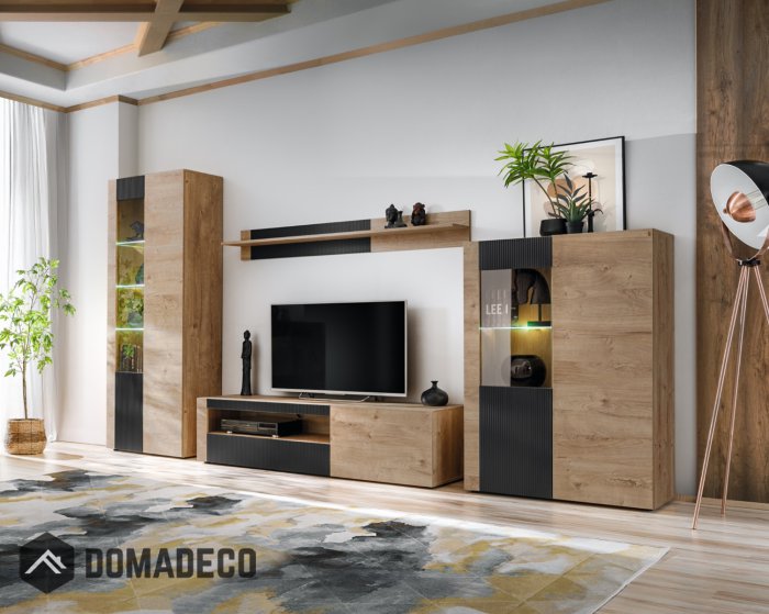 Façades : noir mat, chêne Ribbeck (rainuré)