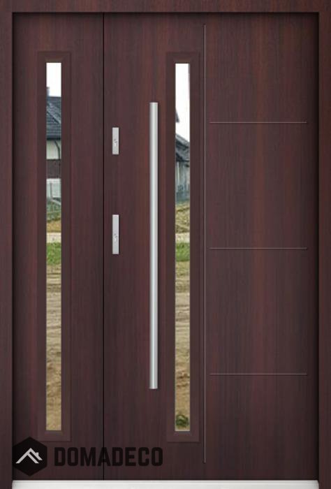 La porte est en acier inoxydable. À l'intérieur, il est rempli de mousse polyuréthane PUR et de bois. L'épaisseur du vantail de porte est de 55 mm. Double système d'étanchéité - un joint est dans le seuil du cadre et l'autre est situé dans la partie de support du vantail de porte. Ils réduisent les vibrations et protègent votre maison contre la perte de chaleur. Ils ne changent pas de volume sous l'influence des conditions atmosphériques. Le cadre de la porte est doté de renforts anti-effraction dans les pièces de charnière et les points de verrouillage.