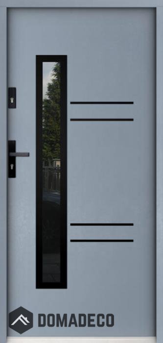 La porte est en acier inoxydable. À l'intérieur, il est rempli de mousse polyuréthane PUR et de bois. L'épaisseur du vantail de porte est de 55 mm. Double système d'étanchéité - un joint est dans le seuil du cadre et l'autre est situé dans la partie de support du vantail de porte. Ils réduisent les vibrations et protègent votre maison contre la perte de chaleur. Ils ne changent pas de volume sous l'influence des conditions atmosphériques. Le cadre de la porte est doté de renforts anti-effraction dans les pièces de charnière et les points de verrouillage.