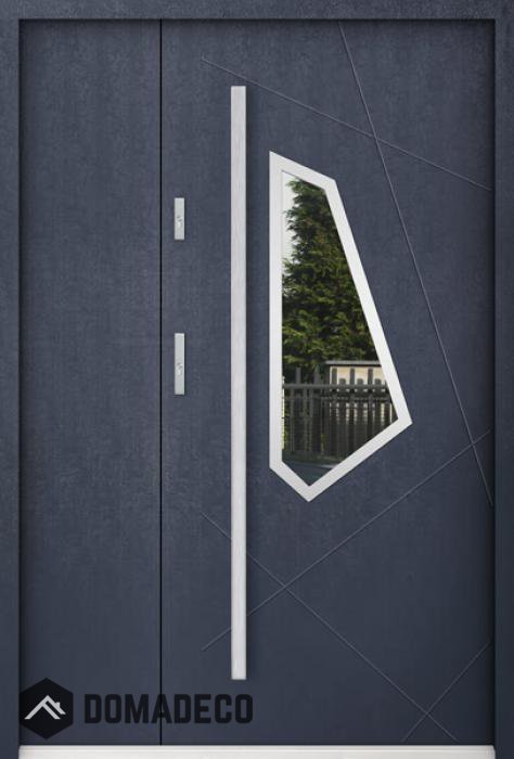 La porte est en acier inoxydable. À l'intérieur, il est rempli de mousse polyuréthane PUR et de bois. L'épaisseur du vantail de porte est de 55 mm. Double système d'étanchéité - un joint est dans le seuil du cadre et l'autre est situé dans la partie de support du vantail de porte. Ils réduisent les vibrations et protègent votre maison contre la perte de chaleur. Ils ne changent pas de volume sous l'influence des conditions atmosphériques. Le cadre de la porte est doté de renforts anti-effraction dans les pièces de charnière et les points de verrouillage.
