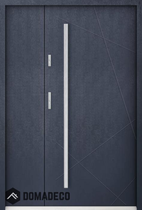 La porte est en acier inoxydable. À l'intérieur, il est rempli de mousse polyuréthane PUR et de bois. L'épaisseur du vantail de porte est de 55 mm. Double système d'étanchéité - un joint est dans le seuil du cadre et l'autre est situé dans la partie de support du vantail de porte. Ils réduisent les vibrations et protègent votre maison contre la perte de chaleur. Ils ne changent pas de volume sous l'influence des conditions atmosphériques. Le cadre de la porte est doté de renforts anti-effraction dans les pièces de charnière et les points de verrouillage.