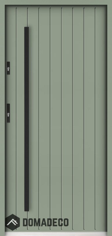 La porte est en acier inoxydable. À l'intérieur, il est rempli de mousse polyuréthane PUR et de bois. L'épaisseur du vantail de porte est de 55 mm. Double système d'étanchéité - un joint est dans le seuil du cadre et l'autre est situé dans la partie de support du vantail de porte. Ils réduisent les vibrations et protègent votre maison contre la perte de chaleur. Ils ne changent pas de volume sous l'influence des conditions atmosphériques. Le cadre de la porte est doté de renforts anti-effraction dans les pièces de charnière et les points de verrouillage.