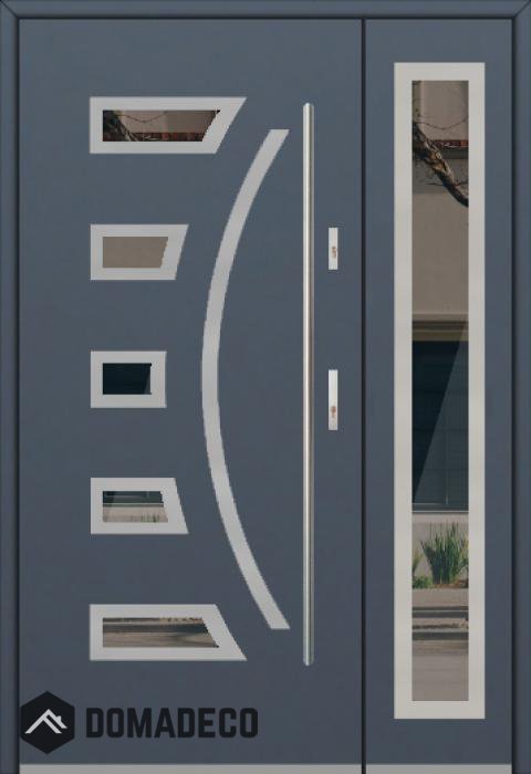 La porte est fabriquée à partir d’acier inoxydable. La structure est remplie de mousse de polyuréthane PUR et de bois. Le vantail de la porte a une épaisseur de 54 mm. Système d'étanchéité double - un joint se situe au fond de la feuillure du cadre et l'autre se situe dans l’élément porteur du vantail de la porte. Ces joints réduisent les vibrations et protègent votre maison des déperditions de chaleur. Ils conservent le même volume, quelles que soient les conditions atmosphériques. Le cadre de la porte est pourvu de renforts antieffraction qui se situent à proximité des charnières et des points de verrouillage.