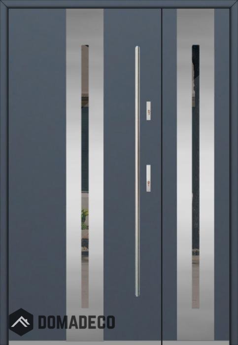 La porte est fabriquée à partir d’acier inoxydable. La structure est remplie de mousse de polyuréthane PUR et de bois. Le vantail de la porte a une épaisseur de 54 mm. Système d'étanchéité double - un joint se situe au fond de la feuillure du cadre et l'autre se situe dans l’élément porteur du vantail de la porte. Ces joints réduisent les vibrations et protègent votre maison des déperditions de chaleur. Ils conservent le même volume, quelles que soient les conditions atmosphériques. Le cadre de la porte est pourvu de renforts antieffraction qui se situent à proximité des charnières et des points de verrouillage.