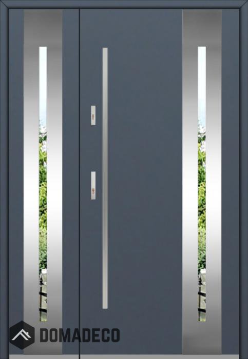 La porte est fabriquée à partir d’acier inoxydable. La structure est remplie de mousse de polyuréthane PUR et de bois. Le vantail de la porte a une épaisseur de 54 mm. Système d'étanchéité double - un joint se situe au fond de la feuillure du cadre et l'autre se situe dans l’élément porteur du vantail de la porte. Ces joints réduisent les vibrations et protègent votre maison des déperditions de chaleur. Ils conservent le même volume, quelles que soient les conditions atmosphériques. Le cadre de la porte est pourvu de renforts antieffraction qui se situent à proximité des charnières et des points de verrouillage.