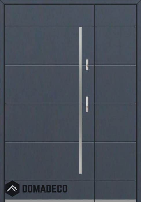 La porte est fabriquée à partir d’acier inoxydable. La structure est remplie de mousse de polyuréthane PUR et de bois. Le vantail de la porte a une épaisseur de 54 mm. Système d'étanchéité double - un joint se situe au fond de la feuillure du cadre et l'autre se situe dans l’élément porteur du vantail de la porte. Ces joints réduisent les vibrations et protègent votre maison des déperditions de chaleur. Ils conservent le même volume, quelles que soient les conditions atmosphériques. Le cadre de la porte est pourvu de renforts antieffraction qui se situent à proximité des charnières et des points de verrouillage.