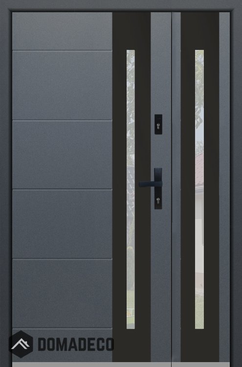 La porte est fabriquée à partir d’acier inoxydable. La structure est remplie de mousse de polyuréthane PUR et de bois. Le vantail de la porte a une épaisseur de 54 mm. Système d'étanchéité double - un joint se situe au fond de la feuillure du cadre et l'autre se situe dans l’élément porteur du vantail de la porte. Ces joints réduisent les vibrations et protègent votre maison des déperditions de chaleur. Ils conservent le même volume, quelles que soient les conditions atmosphériques. Le cadre de la porte est pourvu de renforts antieffraction qui se situent à proximité des charnières et des points de verrouillage.