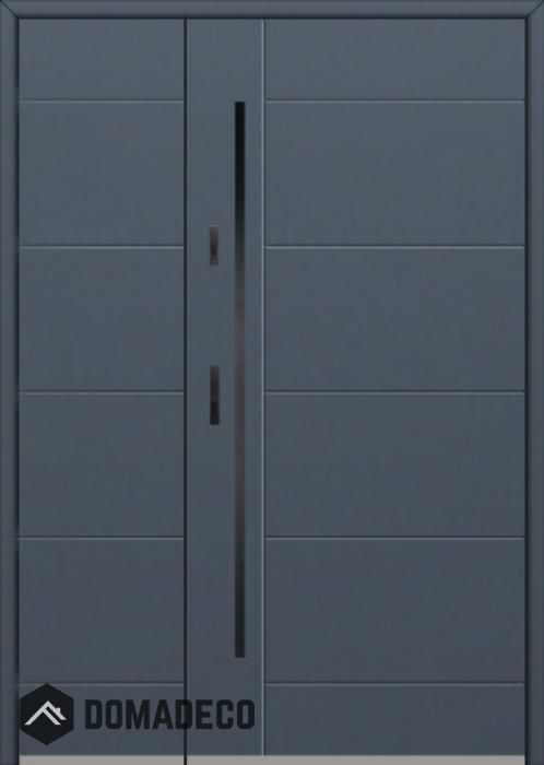 La porte est fabriquée à partir d’acier inoxydable. La structure est remplie de mousse de polyuréthane PUR et de bois. Le vantail de la porte a une épaisseur de 54 mm. Système d'étanchéité double - un joint se situe au fond de la feuillure du cadre et l'autre se situe dans l’élément porteur du vantail de la porte. Ces joints réduisent les vibrations et protègent votre maison des déperditions de chaleur. Ils conservent le même volume, quelles que soient les conditions atmosphériques. Le cadre de la porte est pourvu de renforts antieffraction qui se situent à proximité des charnières et des points de verrouillage.