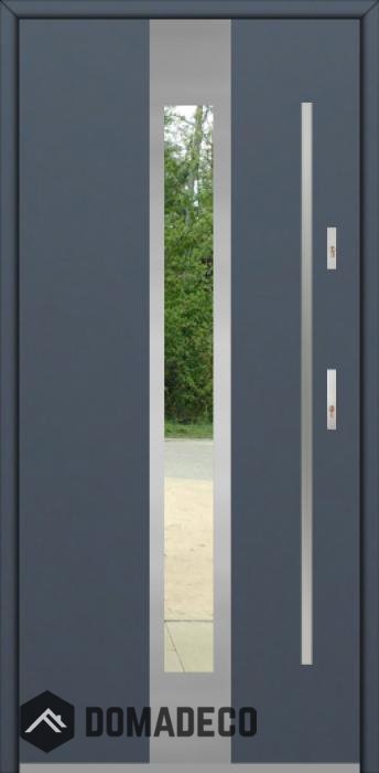 La porte est fabriquée à partir d’acier inoxydable. La structure est remplie de mousse de polyuréthane PUR et de bois. Le vantail de la porte a une épaisseur de 64 mm. Système d'étanchéité double - un joint se situe au fond de la feuillure du cadre et l'autre se situe dans l’élément porteur du vantail de la porte. Ces joints réduisent les vibrations et protègent votre maison des déperditions de chaleur. Ils conservent le même volume, quelles que soient les conditions atmosphériques. Le cadre de la porte est pourvu de renforts antieffraction qui se situent à proximité des charnières et des points de verrouillage.