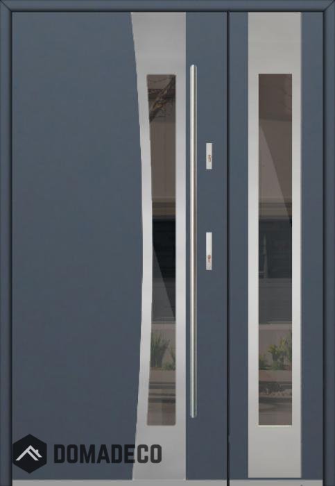 La porte est fabriquée à partir d’acier inoxydable. La structure est remplie de mousse de polyuréthane PUR et de bois. Le vantail de la porte a une épaisseur de 54 mm. Système d'étanchéité double - un joint se situe au fond de la feuillure du cadre et l'autre se situe dans l’élément porteur du vantail de la porte. Ces joints réduisent les vibrations et protègent votre maison des déperditions de chaleur. Ils conservent le même volume, quelles que soient les conditions atmosphériques. Le cadre de la porte est pourvu de renforts antieffraction qui se situent à proximité des charnières et des points de verrouillage.