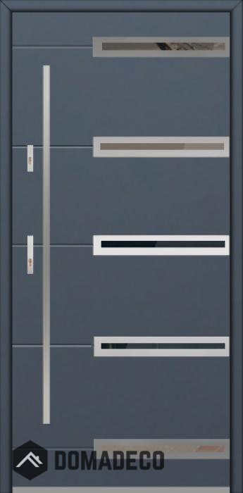 La porte est fabriquée à partir d’acier inoxydable. La structure est remplie de mousse de polyuréthane PUR et de bois. Le vantail de la porte a une épaisseur de 64 mm. Système d'étanchéité double - un joint se situe au fond de la feuillure du cadre et l'autre se situe dans l’élément porteur du vantail de la porte. Ces joints réduisent les vibrations et protègent votre maison des déperditions de chaleur. Ils conservent le même volume, quelles que soient les conditions atmosphériques. Le cadre de la porte est pourvu de renforts antieffraction qui se situent à proximité des charnières et des points de verrouillage.