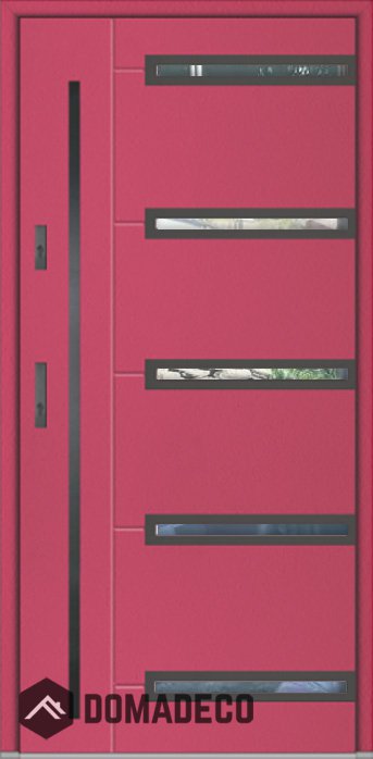 La porte est fabriquée à partir d’acier inoxydable. La structure est remplie de mousse de polyuréthane PUR et de bois. Le vantail de la porte a une épaisseur de 64 mm. Système d'étanchéité double - un joint se situe au fond de la feuillure du cadre et l'autre se situe dans l’élément porteur du vantail de la porte. Ces joints réduisent les vibrations et protègent votre maison des déperditions de chaleur. Ils conservent le même volume, quelles que soient les conditions atmosphériques. Le cadre de la porte est pourvu de renforts antieffraction qui se situent à proximité des charnières et des points de verrouillage.