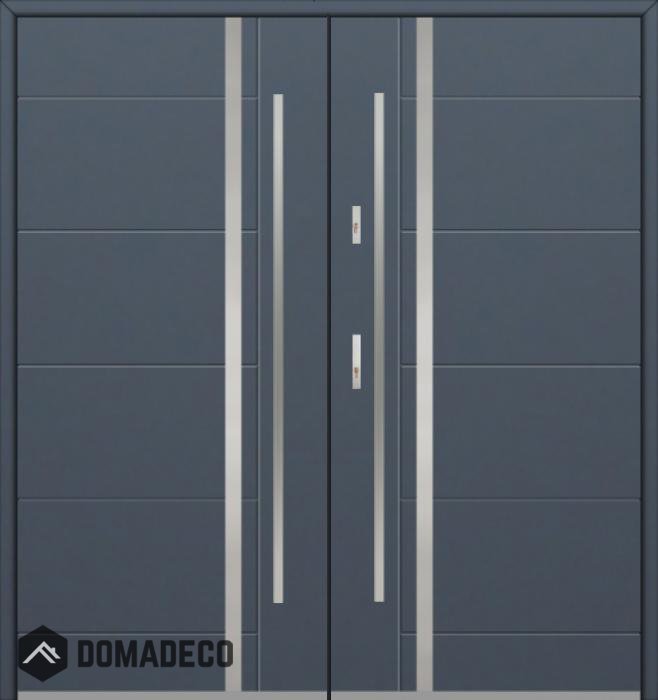 La porte est fabriquée à partir d’acier inoxydable. La structure est remplie de mousse de polyuréthane PUR et de bois. Le vantail de la porte a une épaisseur de 54 mm. Système d'étanchéité double - un joint se situe au fond de la feuillure du cadre et l'autre se situe dans l’élément porteur du vantail de la porte. Ces joints réduisent les vibrations et protègent votre maison des déperditions de chaleur. Ils conservent le même volume, quelles que soient les conditions atmosphériques. Le cadre de la porte est pourvu de renforts antieffraction qui se situent à proximité des charnières et des points de verrouillage.