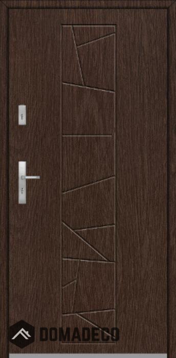 La porte est fabriquée à partir d’acier inoxydable. La structure est remplie de mousse de polyuréthane PUR et de bois. Le vantail de la porte a une épaisseur de 64 mm. Système d'étanchéité double - un joint se situe au fond de la feuillure du cadre et l'autre se situe dans l’élément porteur du vantail de la porte. Ces joints réduisent les vibrations et protègent votre maison des déperditions de chaleur. Ils conservent le même volume, quelles que soient les conditions atmosphériques. Le cadre de la porte est pourvu de renforts antieffraction qui se situent à proximité des charnières et des points de verrouillage.