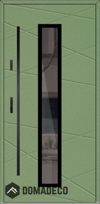 La porte est fabriquée à partir d’acier inoxydable. La structure est remplie de mousse de polyuréthane PUR et de bois. Le vantail de la porte a une épaisseur de 64 mm. Système d'étanchéité double - un joint se situe au fond de la feuillure du cadre et l'autre se situe dans l’élément porteur du vantail de la porte. Ces joints réduisent les vibrations et protègent votre maison des déperditions de chaleur. Ils conservent le même volume, quelles que soient les conditions atmosphériques. Le cadre de la porte est pourvu de renforts antieffraction qui se situent à proximité des charnières et des points de verrouillage.