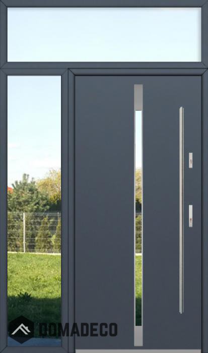La porte est en acier inoxydable. À l'intérieur, il est rempli de mousse polyuréthane PUR et de bois. L'épaisseur du vantail de porte est de 54 mm. Double système d'étanchéité - un joint est dans le seuil du cadre et l'autre est situé dans la partie de support du vantail de porte. Ils réduisent les vibrations et protègent votre maison contre la perte de chaleur. Ils ne changent pas de volume sous l'influence des conditions atmosphériques. Le cadre de la porte est doté de renforts anti-effraction dans les pièces de charnière et les points de verrouillage.