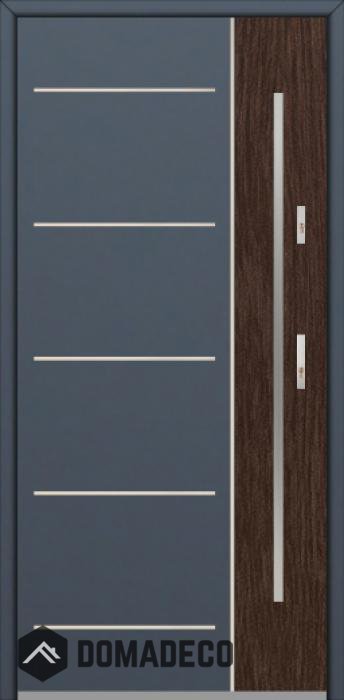 Design moderne conçu grâce à une technologie innovante qui inclut des éléments alignés en acier inoxydable situés sur la surface de la porte.