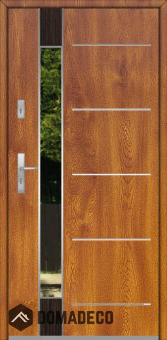 La porte est en acier inoxydable . L'intérieur est rempli de mousse et de bois. Le caisson est recouvert d'aluminium