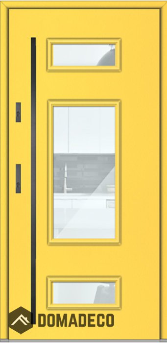La porte est fabriquée à partir d’acier inoxydable. La structure est remplie de mousse de polyuréthane PUR et de bois. Le vantail de la porte a une épaisseur de 64 mm. Système d'étanchéité double - un joint se situe au fond de la feuillure du cadre et l'autre se situe dans l’élément porteur du vantail de la porte. Ces joints réduisent les vibrations et protègent votre maison des déperditions de chaleur. Ils conservent le même volume, quelles que soient les conditions atmosphériques. Le cadre de la porte est pourvu de renforts antieffraction qui se situent à proximité des charnières et des points de verrouillage.