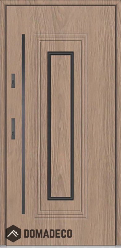 La porte est fabriquée à partir d’acier inoxydable. La structure est remplie de mousse de polyuréthane PUR et de bois. Le vantail de la porte a une épaisseur de 64 mm. Système d'étanchéité double - un joint se situe au fond de la feuillure du cadre et l'autre se situe dans l’élément porteur du vantail de la porte. Ces joints réduisent les vibrations et protègent votre maison des déperditions de chaleur. Ils conservent le même volume, quelles que soient les conditions atmosphériques. Le cadre de la porte est pourvu de renforts antieffraction qui se situent à proximité des charnières et des points de verrouillage.