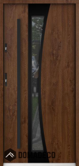 La porte est en acier inoxydable. À l'intérieur, il est rempli de mousse polyuréthane PUR et de bois. L'épaisseur du vantail de porte est de 55 mm. Double système d'étanchéité - un joint est dans le seuil du cadre et l'autre est situé dans la partie de support du vantail de porte. Ils réduisent les vibrations et protègent votre maison contre la perte de chaleur. Ils ne changent pas de volume sous l'influence des conditions atmosphériques. Le cadre de la porte est doté de renforts anti-effraction dans les pièces de charnière et les points de verrouillage.
