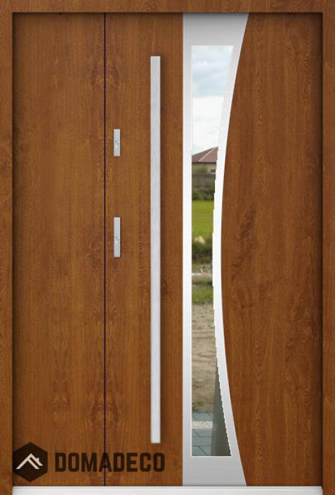La porte est en acier inoxydable. À l'intérieur, il est rempli de mousse polyuréthane PUR et de bois. L'épaisseur du vantail de porte est de 55 mm. Double système d'étanchéité - un joint est dans le seuil du cadre et l'autre est situé dans la partie de support du vantail de porte. Ils réduisent les vibrations et protègent votre maison contre la perte de chaleur. Ils ne changent pas de volume sous l'influence des conditions atmosphériques. Le cadre de la porte est doté de renforts anti-effraction dans les pièces de charnière et les points de verrouillage.