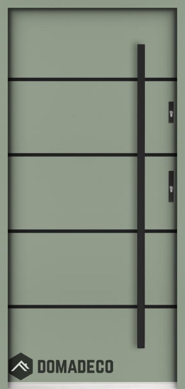La porte est en acier inoxydable. À l'intérieur, il est rempli de mousse polyuréthane PUR et de bois. L'épaisseur du vantail de porte est de 55 mm. Double système d'étanchéité - un joint est dans le seuil du cadre et l'autre est situé dans la partie de support du vantail de porte. Ils réduisent les vibrations et protègent votre maison contre la perte de chaleur. Ils ne changent pas de volume sous l'influence des conditions atmosphériques. Le cadre de la porte est doté de renforts anti-effraction dans les pièces de charnière et les points de verrouillage.