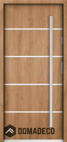 La porte est en acier inoxydable. À l'intérieur, il est rempli de mousse polyuréthane PUR et de bois. L'épaisseur du vantail de porte est de 55 mm. Double système d'étanchéité - un joint est dans le seuil du cadre et l'autre est situé dans la partie de support du vantail de porte. Ils réduisent les vibrations et protègent votre maison contre la perte de chaleur. Ils ne changent pas de volume sous l'influence des conditions atmosphériques. Le cadre de la porte est doté de renforts anti-effraction dans les pièces de charnière et les points de verrouillage.