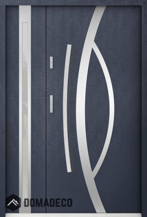 La porte est en acier inoxydable. À l'intérieur, il est rempli de mousse polyuréthane PUR et de bois. L'épaisseur du vantail de porte est de 55 mm. Double système d'étanchéité - un joint est dans le seuil du cadre et l'autre est situé dans la partie de support du vantail de porte. Ils réduisent les vibrations et protègent votre maison contre la perte de chaleur. Ils ne changent pas de volume sous l'influence des conditions atmosphériques. Le cadre de la porte est doté de renforts anti-effraction dans les pièces de charnière et les points de verrouillage.
