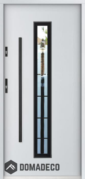 La porte est en acier inoxydable. À l'intérieur, il est rempli de mousse polyuréthane PUR et de bois. L'épaisseur du vantail de porte est de 55 mm. Double système d'étanchéité - un joint est dans le seuil du cadre et l'autre est situé dans la partie de support du vantail de porte. Ils réduisent les vibrations et protègent votre maison contre la perte de chaleur. Ils ne changent pas de volume sous l'influence des conditions atmosphériques. Le cadre de la porte est doté de renforts anti-effraction dans les pièces de charnière et les points de verrouillage.