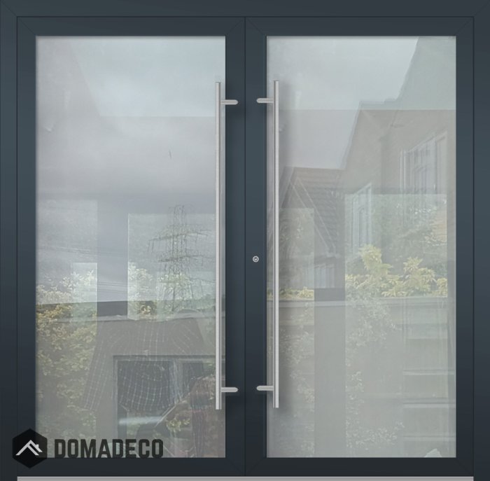 LIM Glass double – Porte double en aluminium avec façade entièrement vitrée et givrée
