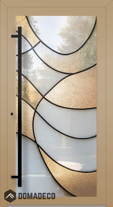 LIM SG3 - Porte extérieure en aluminium à charnières personnalisable avec vitrail