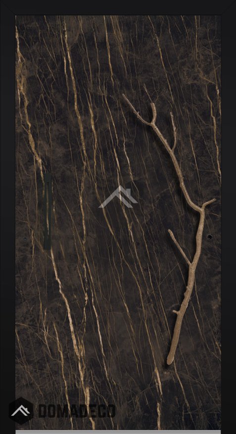 Les vantaux de la porte sont en quartz fritté. Le quartz fritté n'existe pas dans la nature, cependant la méthode qui permet d'obtenir ce matériau consiste à mélanger et à presser, entre autres, des argiles schisteuses, du sable quartzeux et des roches granitiques. La préparation ainsi obtenue est durcie par la cuisson. Les vantaux de porte en quartz fritté ont un style industriel et urbain, cependant ils sont également associés aux intérieurs raffinés et élégants.