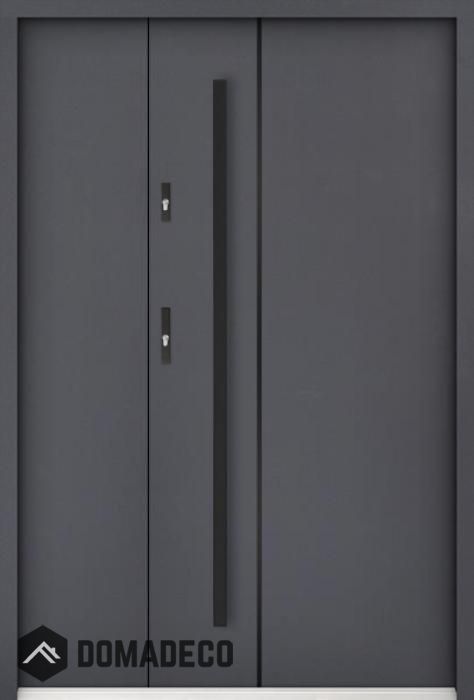 La porte est en acier inoxydable. À l'intérieur, il est rempli de mousse polyuréthane PUR et de bois. L'épaisseur du vantail de porte est de 55 mm. Double système d'étanchéité - un joint est dans le seuil du cadre et l'autre est situé dans la partie de support du vantail de porte. Ils réduisent les vibrations et protègent votre maison contre la perte de chaleur. Ils ne changent pas de volume sous l'influence des conditions atmosphériques. Le cadre de la porte est doté de renforts anti-effraction dans les pièces de charnière et les points de verrouillage.