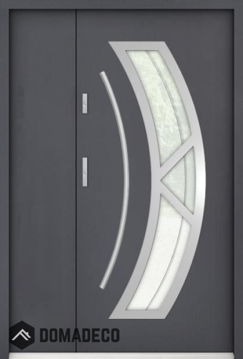 La porte est en acier inoxydable. À l'intérieur, il est rempli de mousse polyuréthane PUR et de bois. L'épaisseur du vantail de porte est de 55 mm. Double système d'étanchéité - un joint est dans le seuil du cadre et l'autre est situé dans la partie de support du vantail de porte. Ils réduisent les vibrations et protègent votre maison contre la perte de chaleur. Ils ne changent pas de volume sous l'influence des conditions atmosphériques. Le cadre de la porte est doté de renforts anti-effraction dans les pièces de charnière et les points de verrouillage.