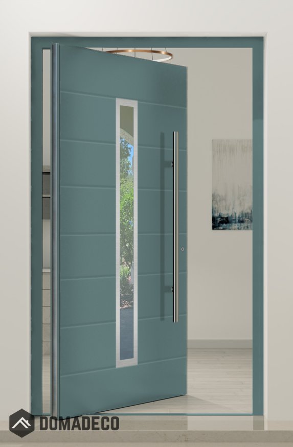 - Porte pivotante et cadre de porte en aluminium;