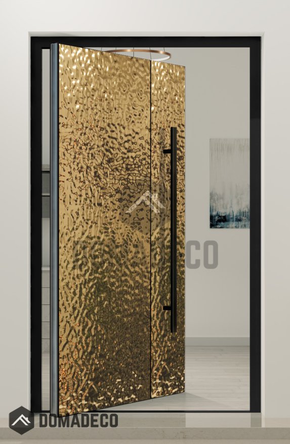 PIVOT B2 - porte pivotante en aluminium recouverte d'une feuille d'acier inoxydable dorée