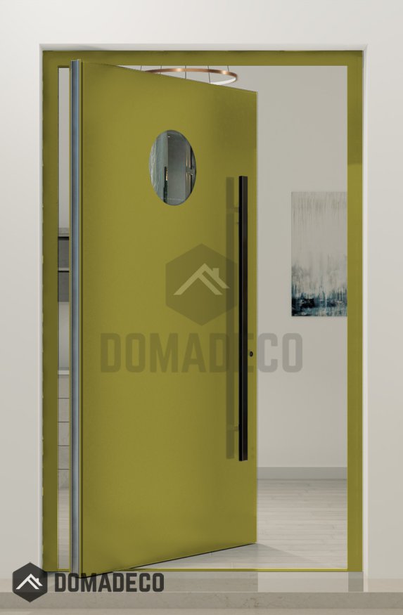 PIVOT Bila - porte pivotante extérieure en aluminium avec vitre circulaire