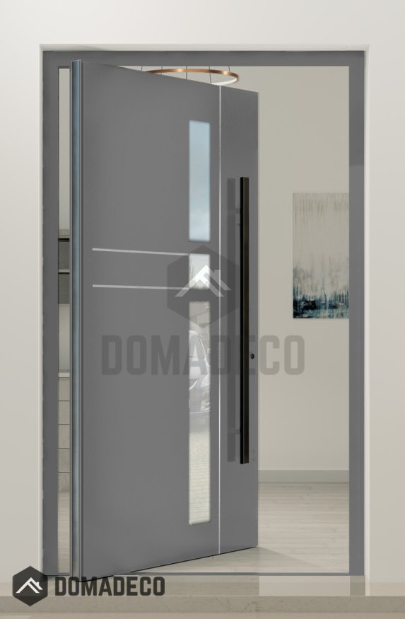 - Porte pivotante et cadre de porte en aluminium;