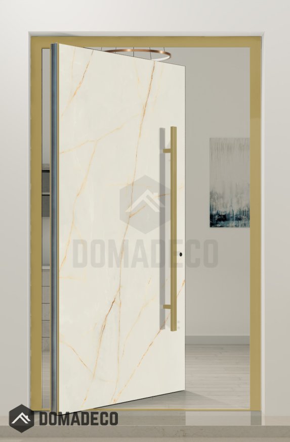 PIVOT Cristallo - porte pivotante en aluminium recouverte de quartz fritté Cristallo