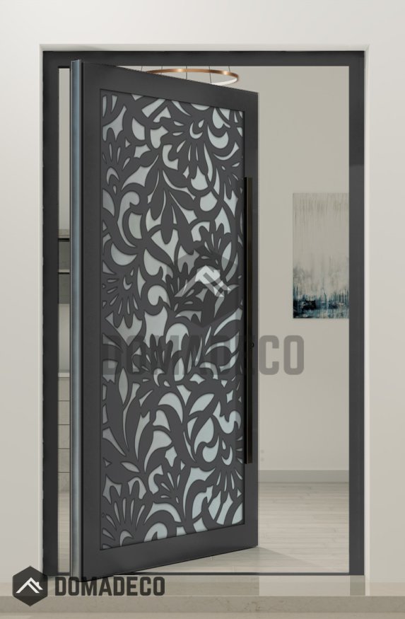 PIVOT G1 - Porte pivotante en verre et aluminium avec panneau décoratif