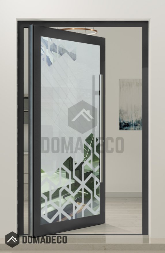 PIVOT Glass S12 - porte pivotante en aluminium dépoli avec décor transparent