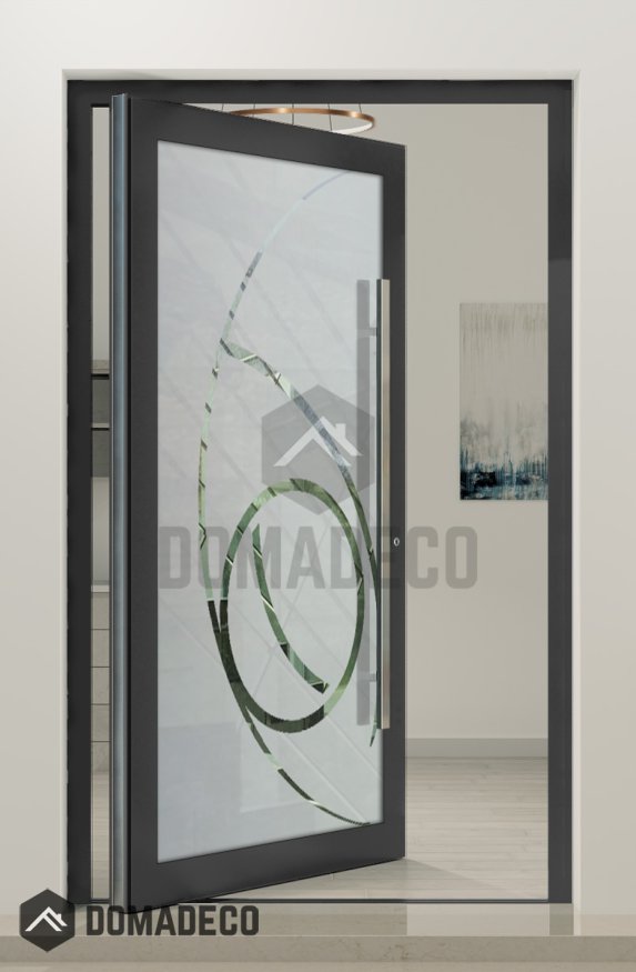 PIVOT Glass S16 - porte pivotante en aluminium dépoli avec décor transparent