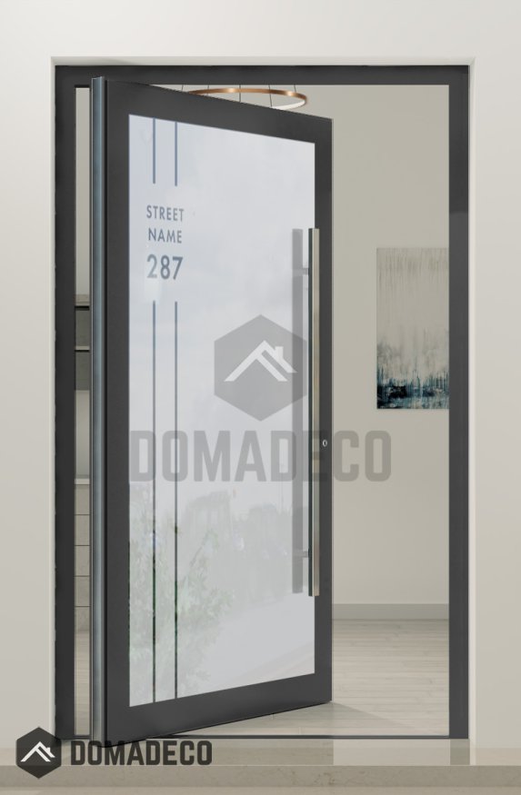 PIVOT Glass S23 - porte pivotante en aluminium dépoli avec adresse transparente