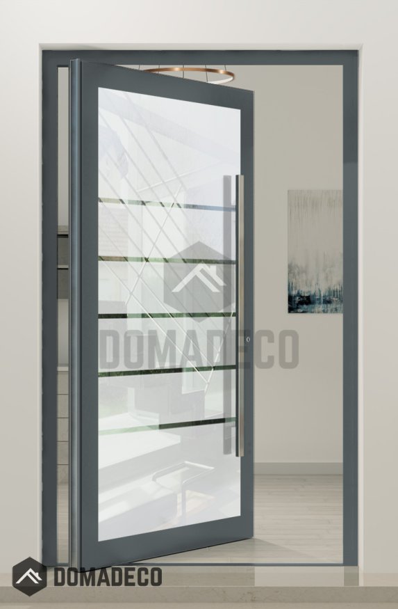 PIVOT Glass S5 - porte pivotante en aluminium dépoli avec cinq bandes transparentes
