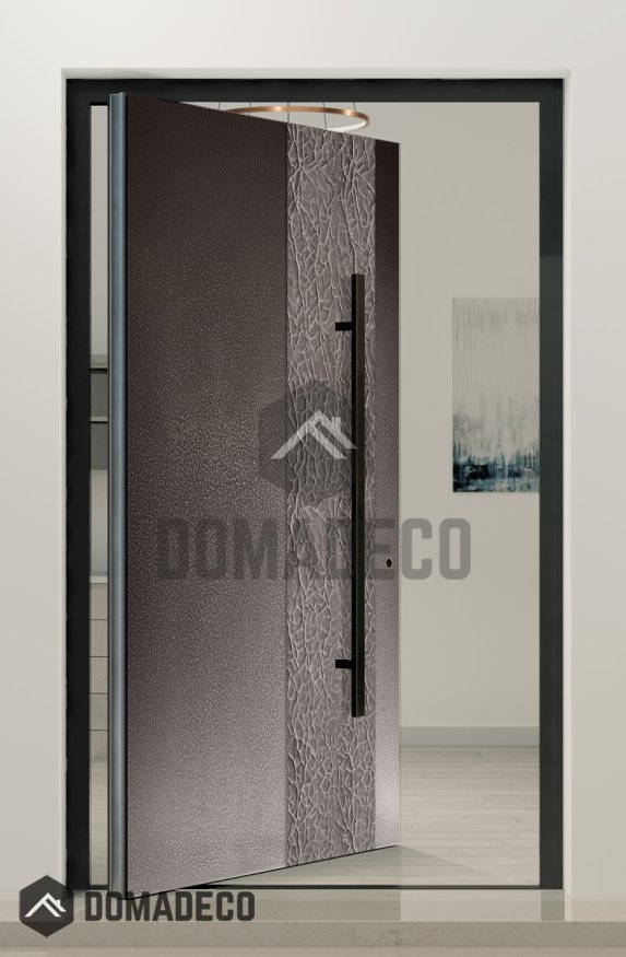 PIVOT M27 - porte pivotante en aluminium avec porte à texture brune en métal fraisé