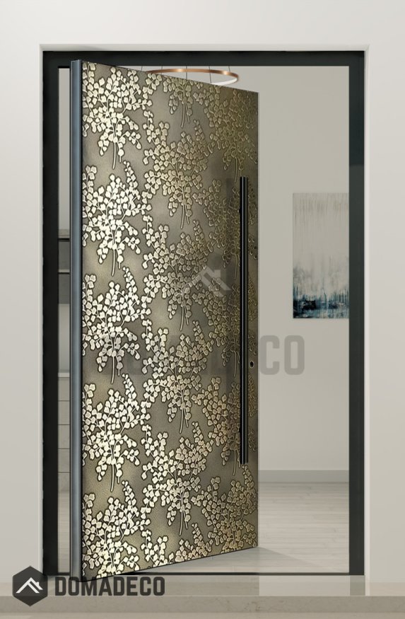 PIVOT M28 - porte pivotante en aluminium avec texture laiton en métal fraisé
