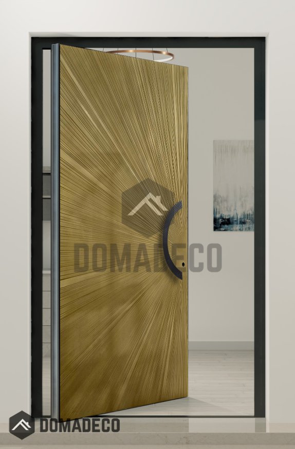 PIVOT M8 - porte pivotante en aluminium avec texture dorée en métal fraisé